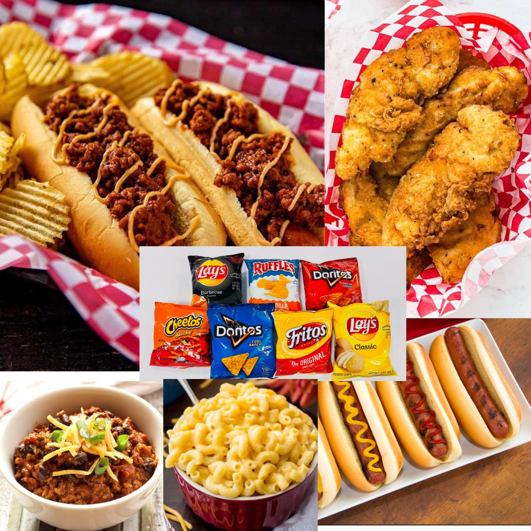 We will be serving Walking Tacos, Hotdogs/ Chili dogs, Mac & Cheese, Chicken Fingers, Chili, Chips, Water and Soda!